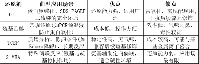 还原机理:通过巯基与二硫键交换,但还原能力较弱,需较高浓度。适合pH 8-9。 可能残留部分二硫键。