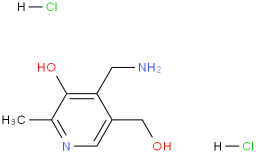| 中文别名 | 4-氨基甲基-5-羟基-6-甲基-3-吡啶甲醇二盐酸盐、双盐酸吡哆胺 |
