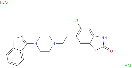 | 中文别名 | 5-[2-[4-(1,2-benzisothiazol-3-yl)-1-piperazinyl]ethyl]-6-chloro-1,3-dihydro-2H-indol-2-one 盐酸盐 一水合物, |