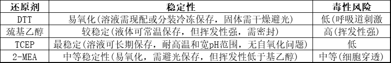 强还原需求:首选TCEP(高效稳定)或DTT(完全还原)。
