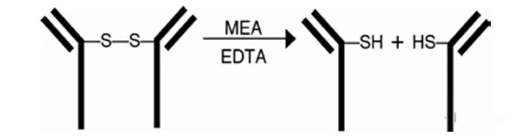图2 用2-巯基乙胺(2-MEA)选择性还原IgG(免疫球蛋白G)铰链区的二硫键